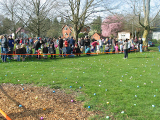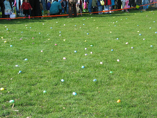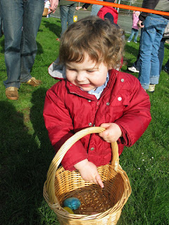 This was Wade's first egg collecting adventure and boy was he excited about it. It took him a few minutes to realize what he was supposed to do and to try not to get trampled by other egg hunters but as this picture shows, he was quite proud of his take.