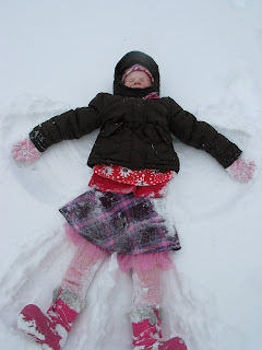 Holy cow, that is a lot of snow. I love the pink snow angel(the photograph and the girl).